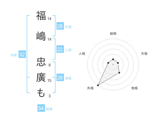 福嶋 忠廣もさんを姓名の画数から五運を鑑定