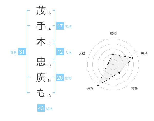 茂手木 忠廣もさんを姓名の画数から五運を鑑定