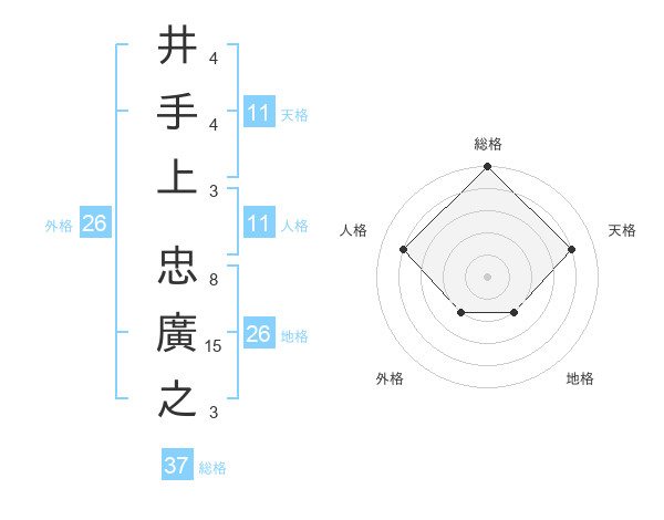 井手上 忠廣之さんを姓名の画数から五運を鑑定