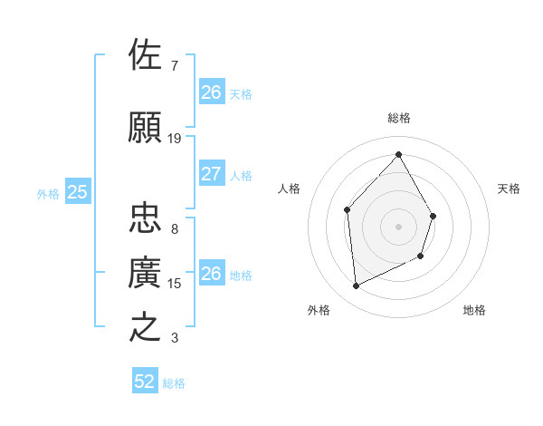 佐願 忠廣之さんを姓名の画数から五運を鑑定