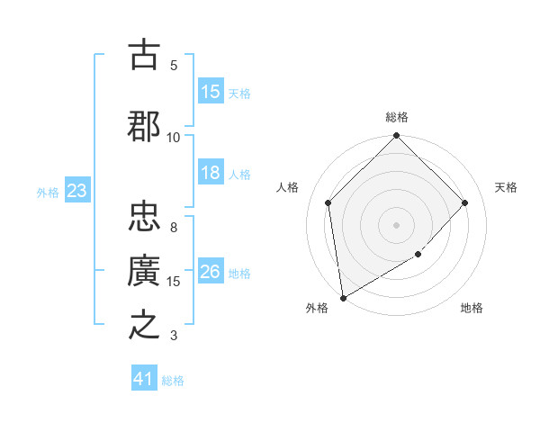 古郡 忠廣之さんの外格は23画の5点!