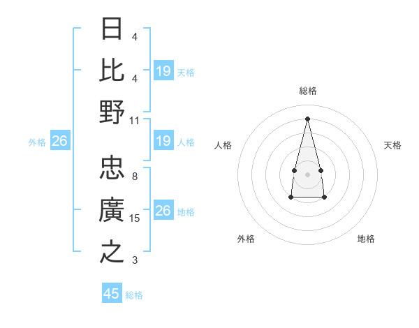 日比野 忠廣之さんの総格は45画の4点!