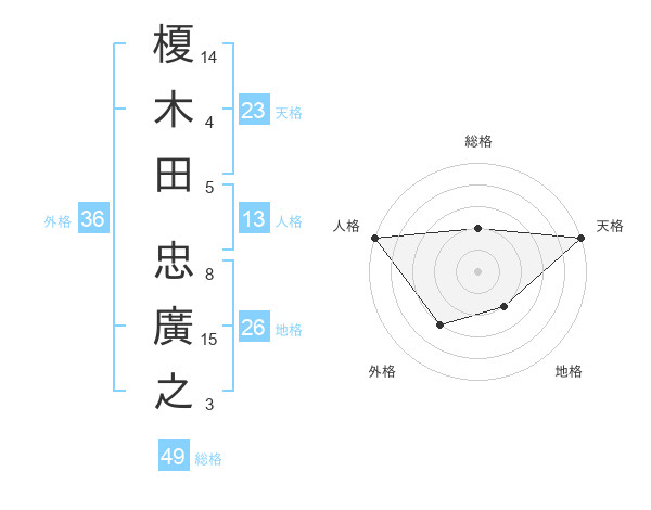 榎木田 忠廣之さんを姓名の画数から五運を鑑定