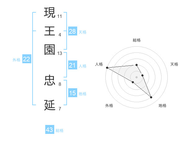 現王園 忠延さんを姓名の画数から五運を鑑定