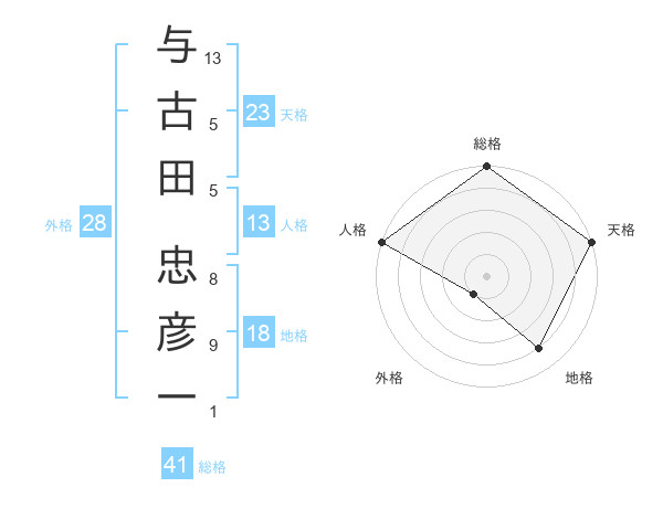 与古田 忠彦一さんを姓名の画数から五運を鑑定