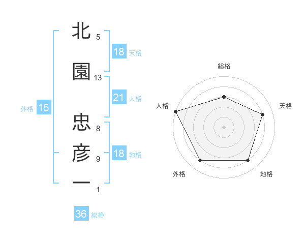 北園 忠彦一さんを姓名の画数から五運を鑑定
