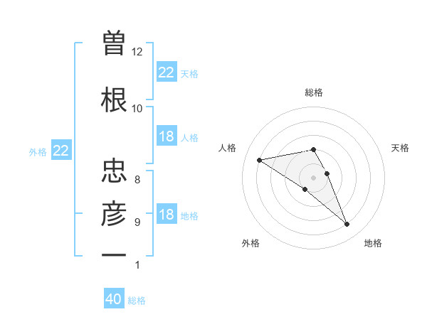 曽根 忠彦一さんを姓名の画数から五運を鑑定