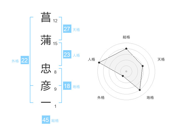 菖蒲 忠彦一さんの総格は45画の4点!