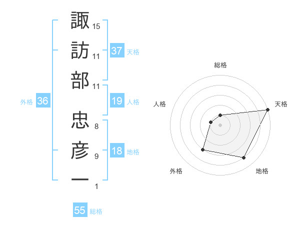 諏訪部 忠彦一さんの天格は37画の5点!