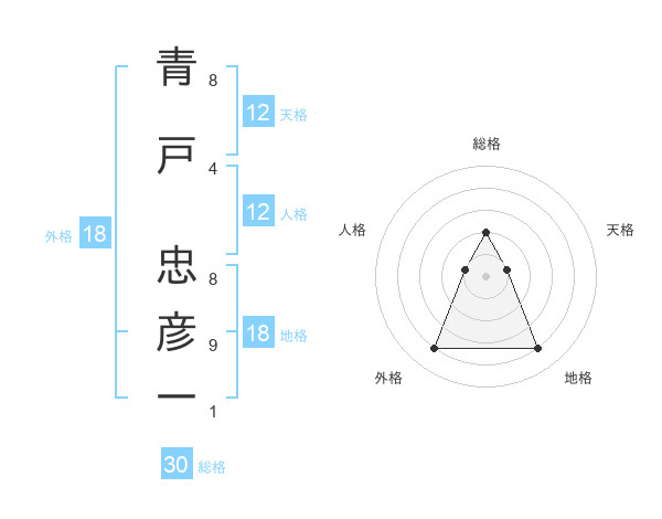 青戸 忠彦一さんを姓名の画数から五運を鑑定