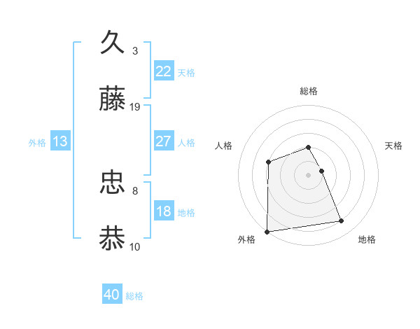 久藤 忠恭さんを姓名の画数から五運を鑑定