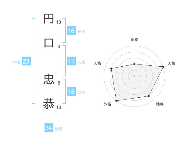 円口 忠恭さんの総格は34画の2点!
