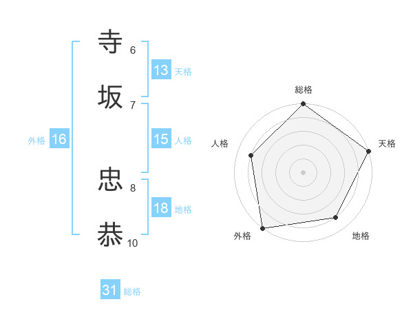 寺坂 忠恭さんの総格は31画の5点!