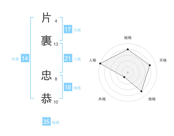 片裏 忠恭さんを姓名の画数から五運を鑑定