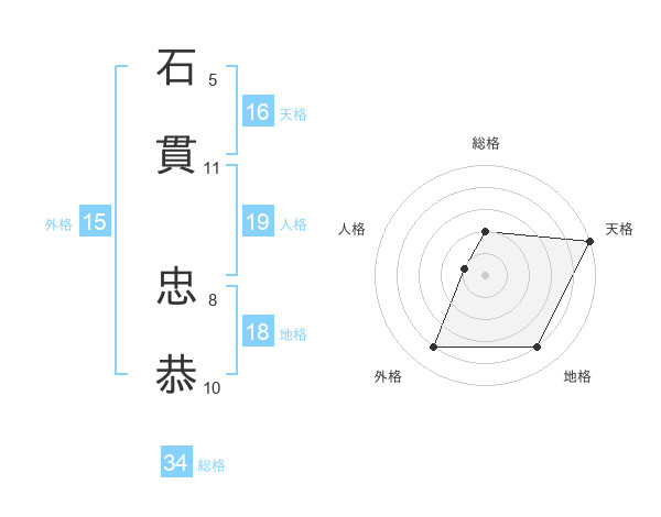 石貫 忠恭さんを姓名の画数から五運を鑑定