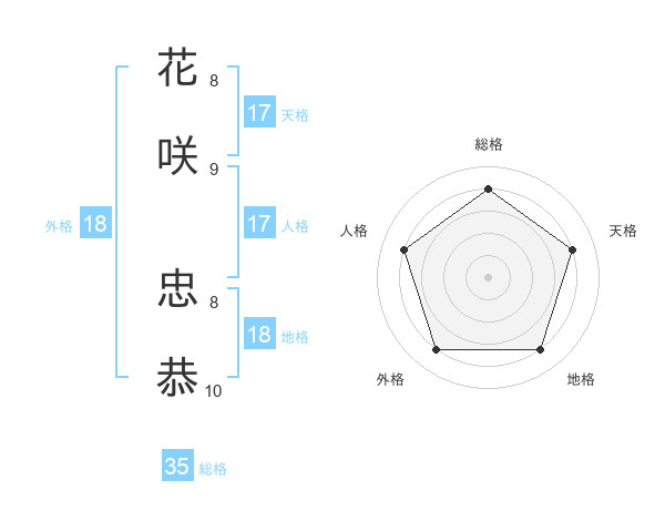 花咲 忠恭さんを姓名の画数から五運を鑑定