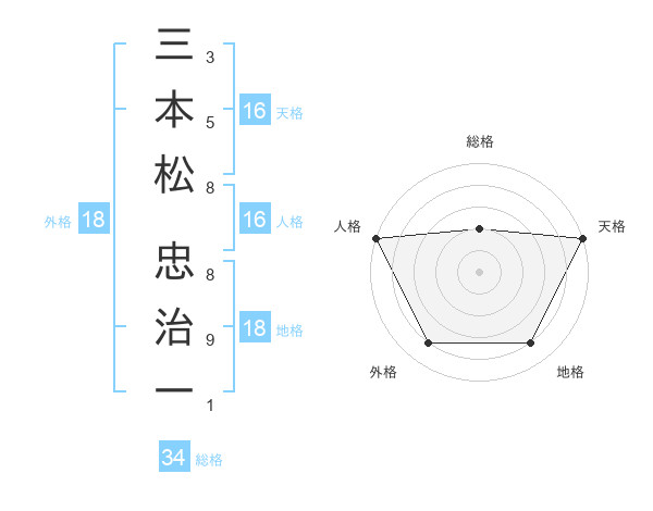 三本松 忠治一さんを姓名の画数から五運を鑑定