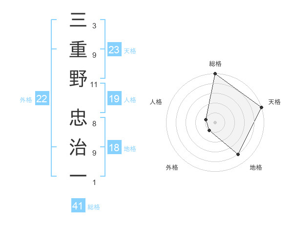 三重野 忠治一さんを姓名の画数から五運を鑑定