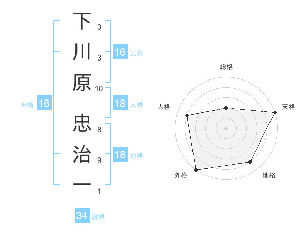 下川原 忠治一さんを姓名の画数から五運を鑑定
