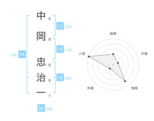 中岡 忠治一さんを姓名の画数から五運を鑑定