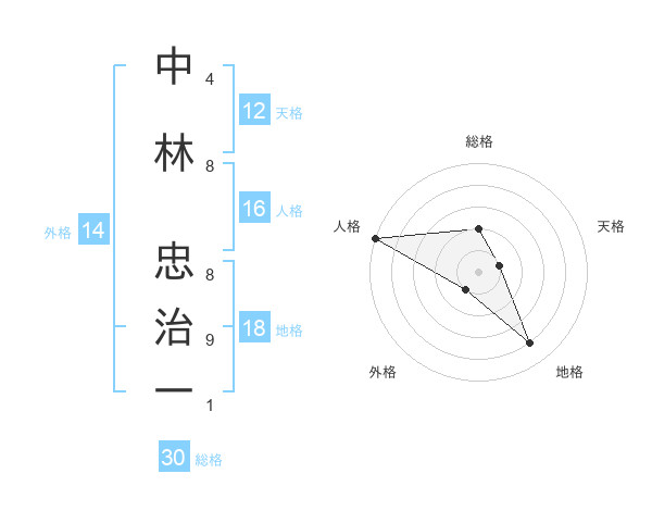 中林 忠治一さんを姓名の画数から五運を鑑定