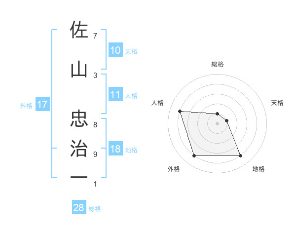 佐山 忠治一さんを姓名の画数から五運を鑑定