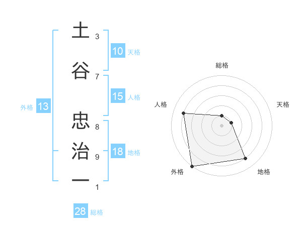 土谷 忠治一さんを姓名の画数から五運を鑑定