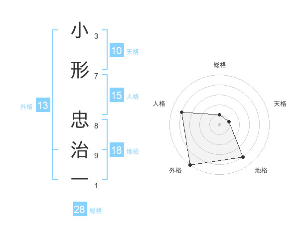 小形 忠治一さんを姓名の画数から五運を鑑定
