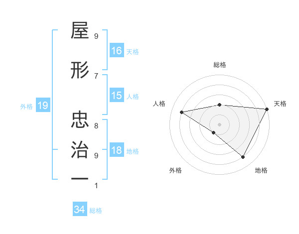 屋形 忠治一さんの天格は16画の5点!