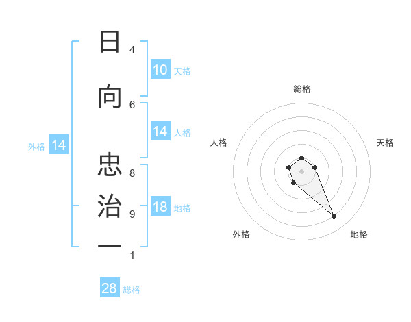日向 忠治一さんの総格は28画の1点!