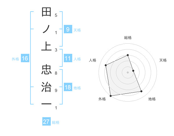 田ノ上 忠治一さんを姓名の画数から五運を鑑定