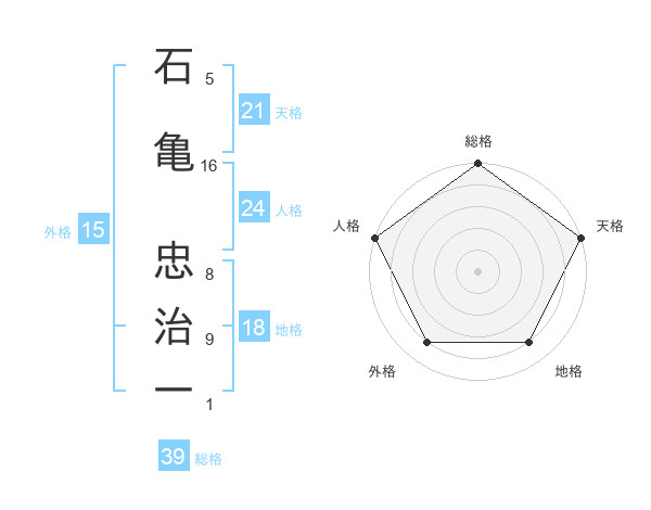 石亀 忠治一さんを姓名の画数から五運を鑑定