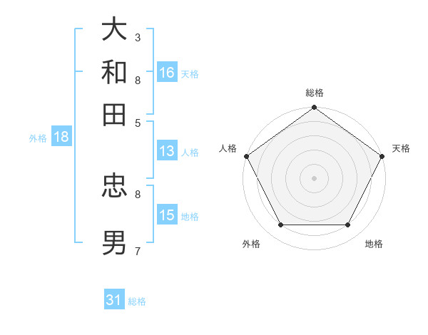 大和田 忠男さんの総格は31画の5点!