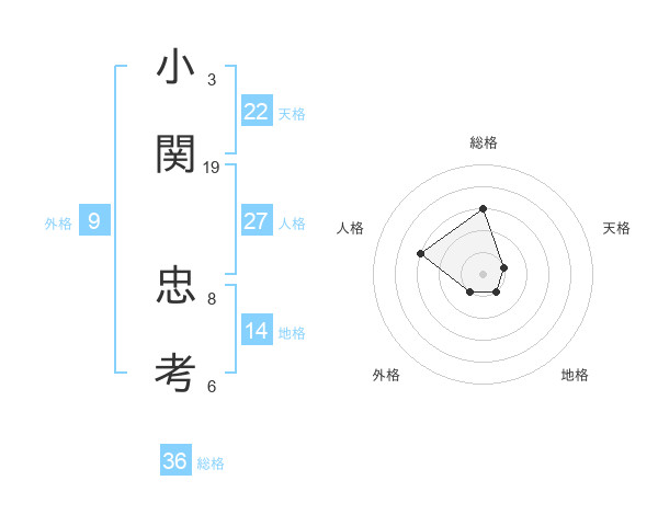 小関 忠考さんの総格は36画の3点