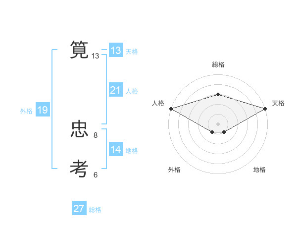 筧 忠考さんの天格は13画の5点!