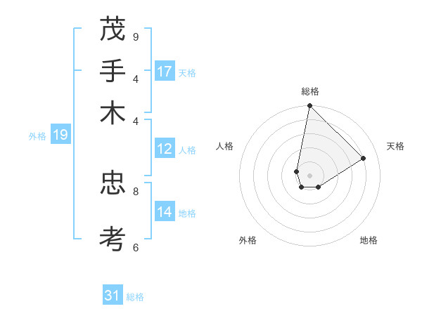 茂手木 忠考さんを姓名の画数から五運を鑑定