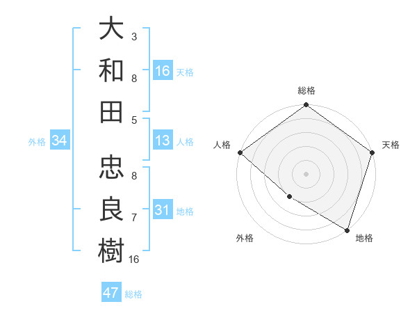 大和田 忠良樹さんを姓名の画数から五運を鑑定