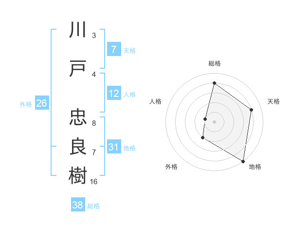 川戸 忠良樹さんの総格は38画の4点!
