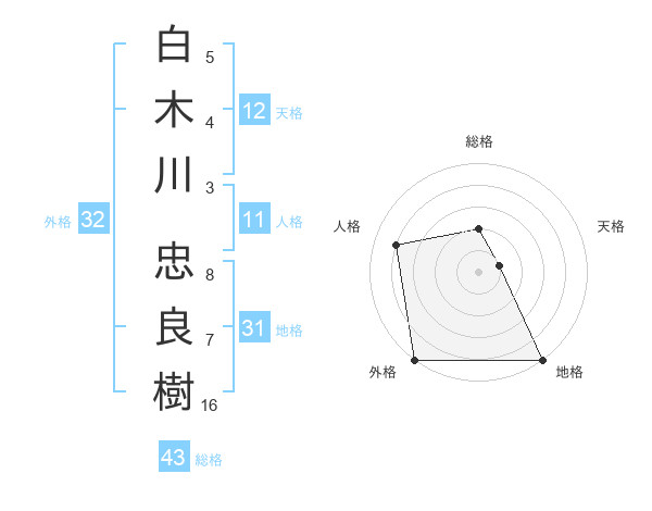 白木川 忠良樹さんを姓名の画数から五運を鑑定