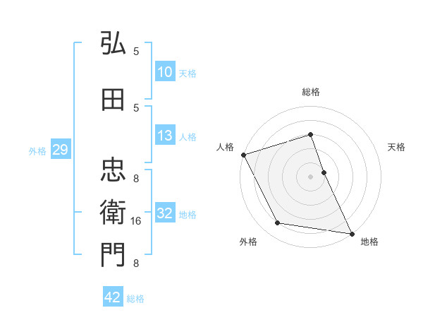弘田 忠衛門さんの総格は42画の3点!