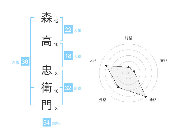 森高 忠衛門さんを姓名の画数から五運を鑑定