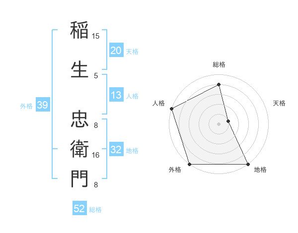 稲生 忠衛門さんの総格は52画の4点!
