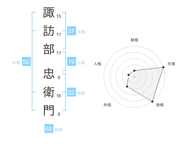 諏訪部 忠衛門さんの総格は69画の1点!