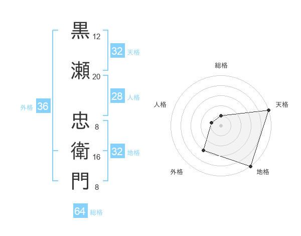 黒瀬 忠衛門さんを姓名の画数から五運を鑑定