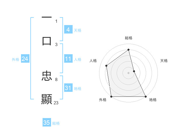 一口 忠顯さんを姓名の画数から五運を鑑定