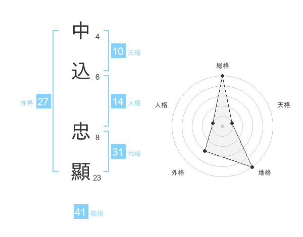 中込 忠顯さんの総格は41画の5点!
