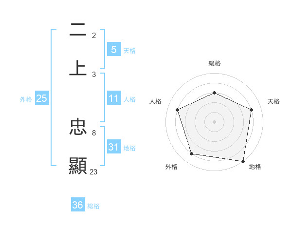 二上 忠顯さんの地格は31画の5点!