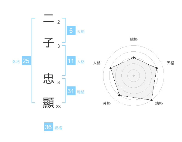 二子 忠顯さんの地格は31画の5点!