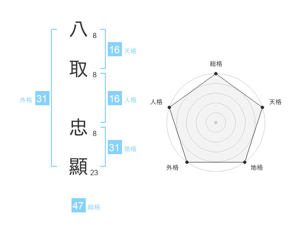 八取 忠顯さんの外格は31画の5点!