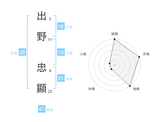 出野 忠顯さんの総格は47画の5点!